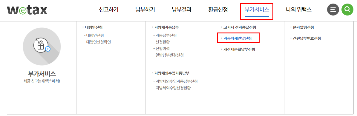 자동차세 연납 신청은 위택스에서 가능합니다.