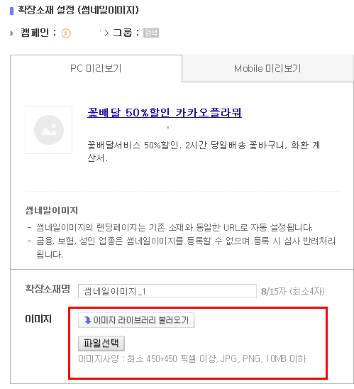 다음 검색광고 프리미엄링크 이미지 등록하기