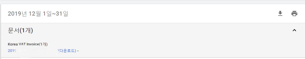 이보다 이전 달 즉 11월 이전의 세금계산서를 확인하고 싶다면 결제문서를 클릭 후 우측 상단의 날짜를 수정후 구글광고 세금계산서 정보를 확인 다운로드 받으시면 됩니다.