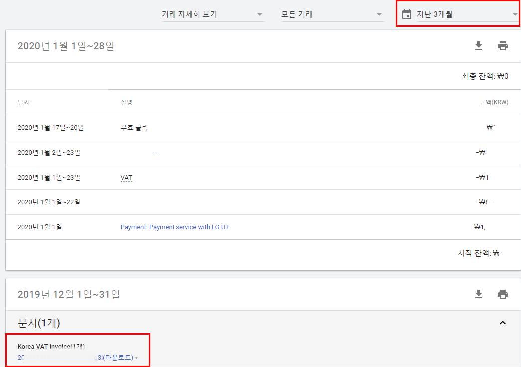 구글광고 ads 애드워즈 세금계산서 확인 및 발급 받기