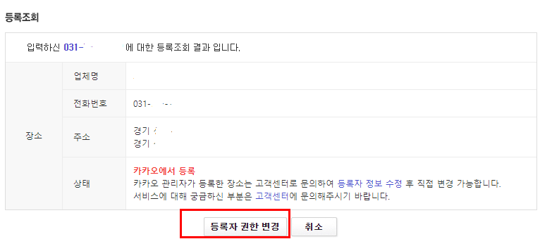 수정요청 외 네이버와 같이 권한을 받아 즉시 수정할 수도 있습니다. 우선 다음 검색등록에 접속하세요. 다음에서 "다음검색등록" 검색하면 사이트가 나옵니다. 위 이미지와 같은 페이지면 맞습니다. 몇년간 바뀐게 없어요 ㅎㅎ 다음에 등록되어 있는 전화번호로 검색하세요.